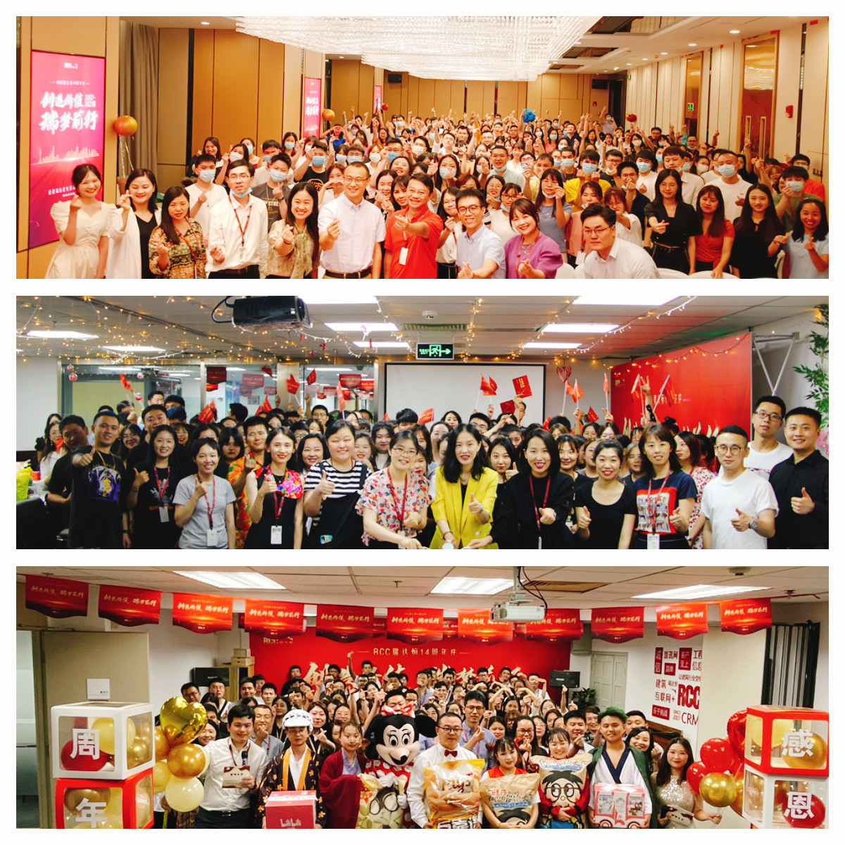 ? ? 7月18日,RCC瑞達恒全國12家分公司&辦事處,共同舉辦十四周年慶典活動。